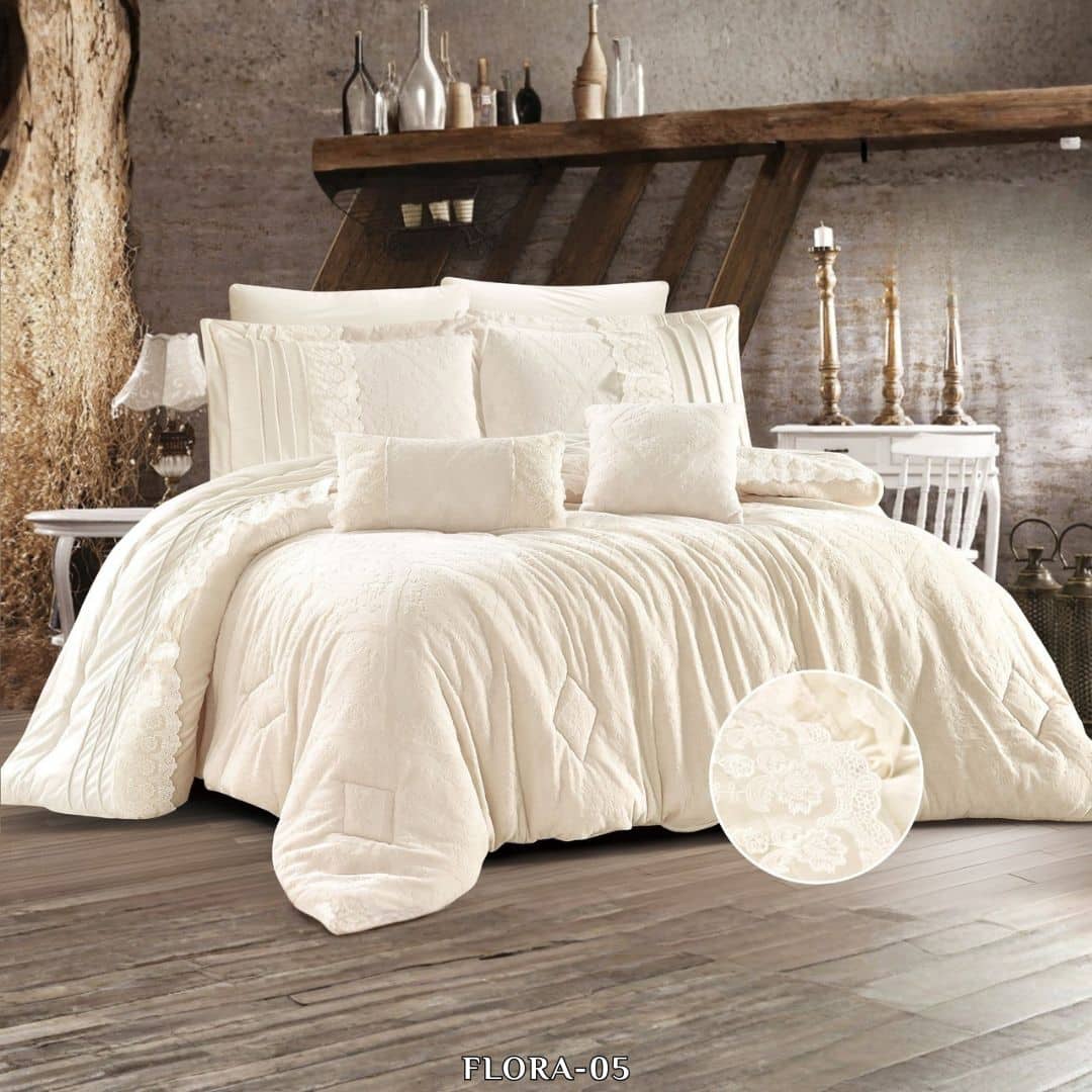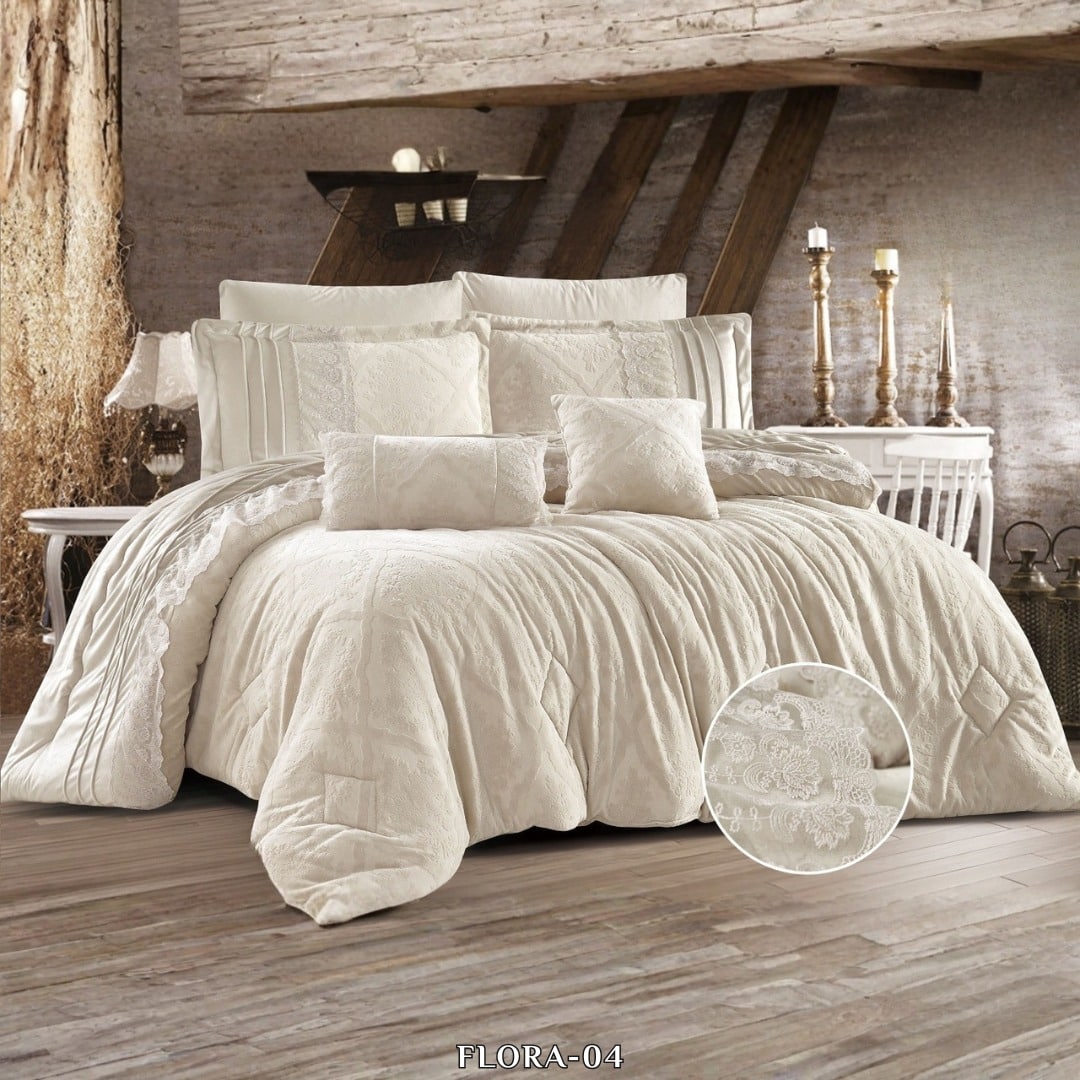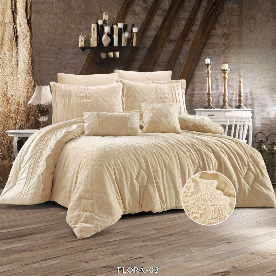 Elegant Velvet & luxury Fur – comforter with Lace super king