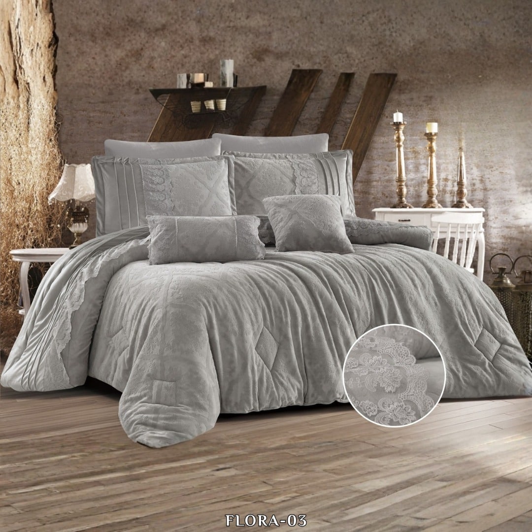 Elegant Velvet & Luxury Fur – comforter with Lace super king