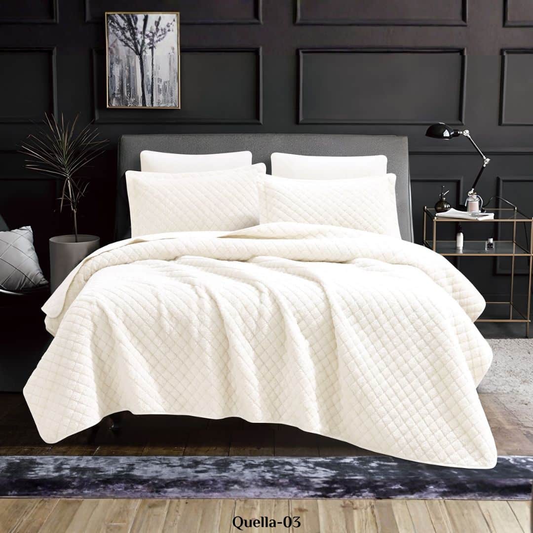 يتميز هذا المفرش بملمس فخم يعبّر عن جودة الخامة وروعة الحياكة، مع خامة مخملية لامعة تعكس الضوء برقة وتمنح السرير مظهرًا غنيًا يليق بالفنادق الفاخرة.