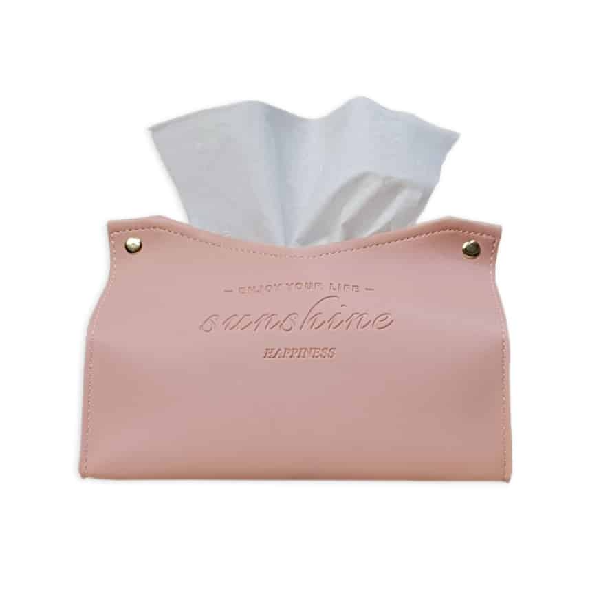 بوكس مناديل جلد فاخر – حفر ليزر – لون بينك