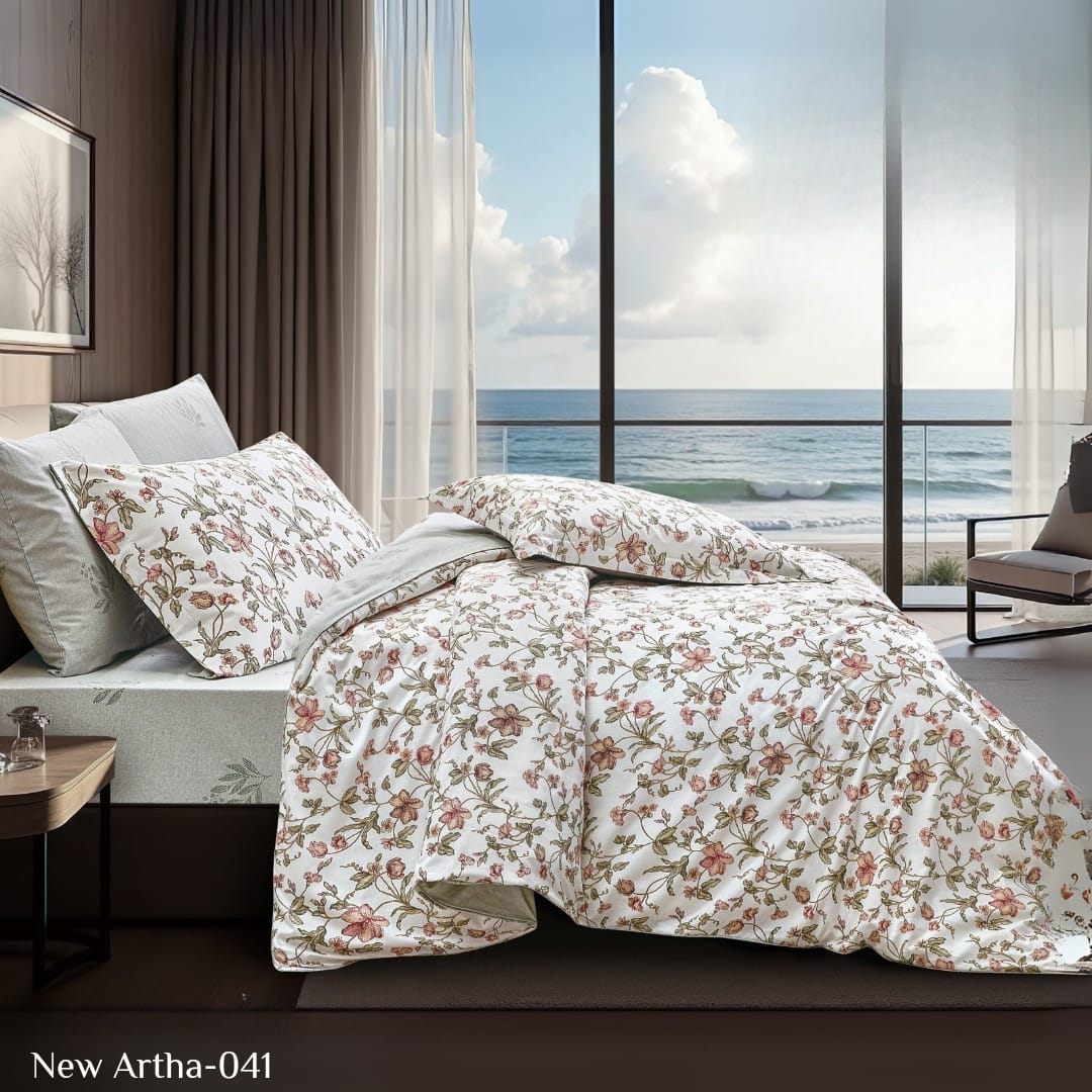 تلبيسة لحاف بدون حشو بنقوش طبيعية من الورود الواقعية تجمع بين جمال الطبيعة والأناقة الراقية.