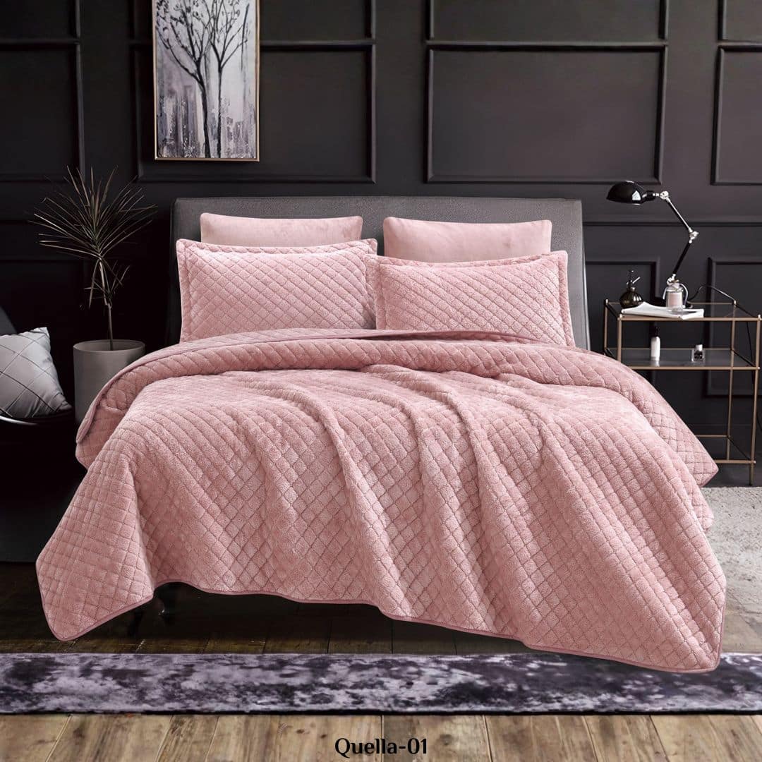 يتميز هذا المفرش بملمس فخم يعبّر عن جودة الخامة وروعة الحياكة، مع خامة مخملية لامعة تعكس الضوء برقة وتمنح السرير مظهرًا غنيًا يليق بالفنادق الفاخرة.