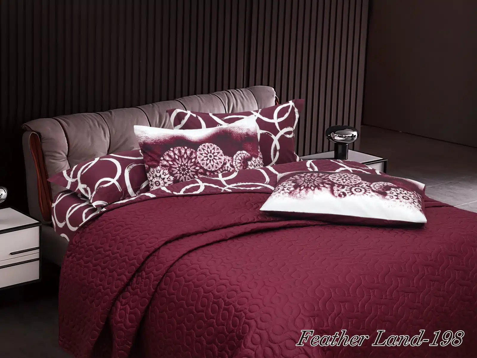 سهل الإندماج والتناسق مع ديكور غرفة نومك بالإضافة للأشكال الزخرفية بهيئة معينات هندسية بخيوط ناعمة على اللحاف لتجعله يبدو قمة في الفخامة والرقي.